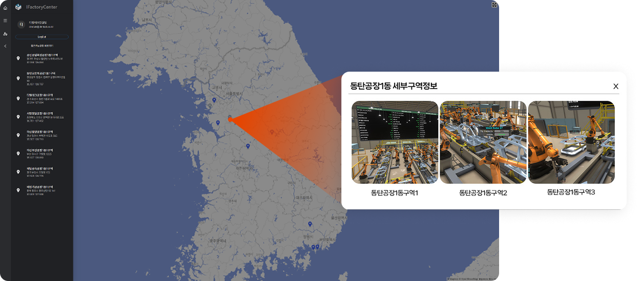 직관적 현장 모니터- 실시간으로 여러 공장의 설비 작동 상태를 확인 - 시각 정보에 따라 직관적으로 설비 고장 원인을 파악하거나 | ![]() |