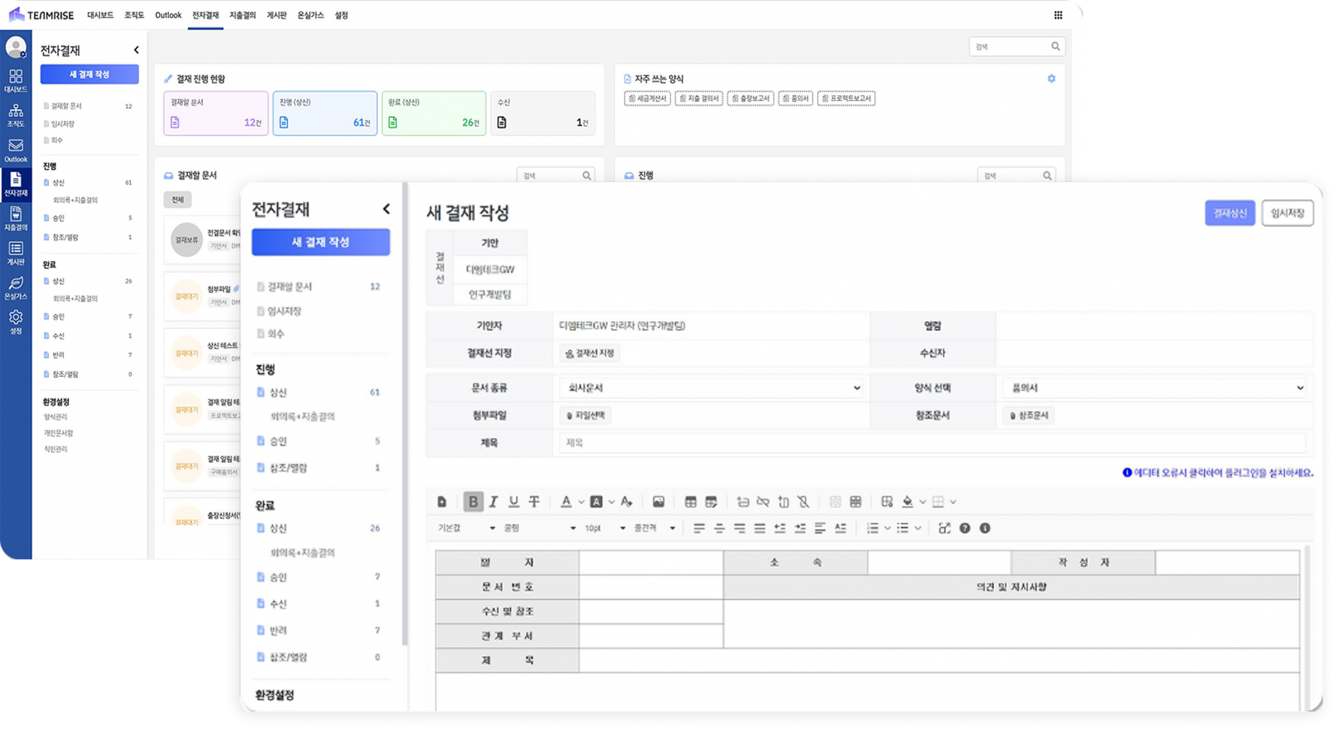 0여 종의 기본 양식을 제공하며, 결재 진행 상황은 실시간으로 확인하여 업무의 흐름을 추적할 수 있습니다.